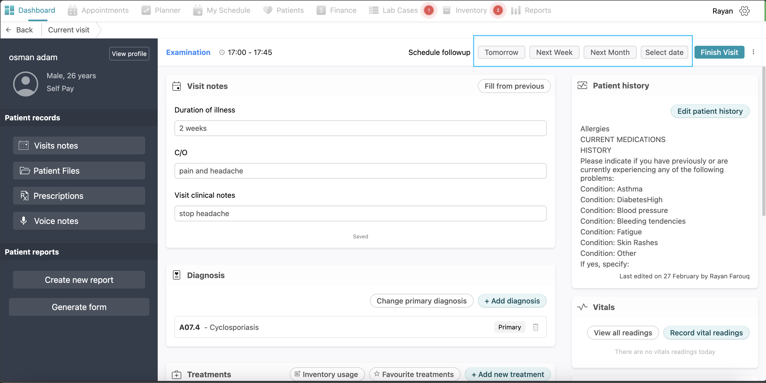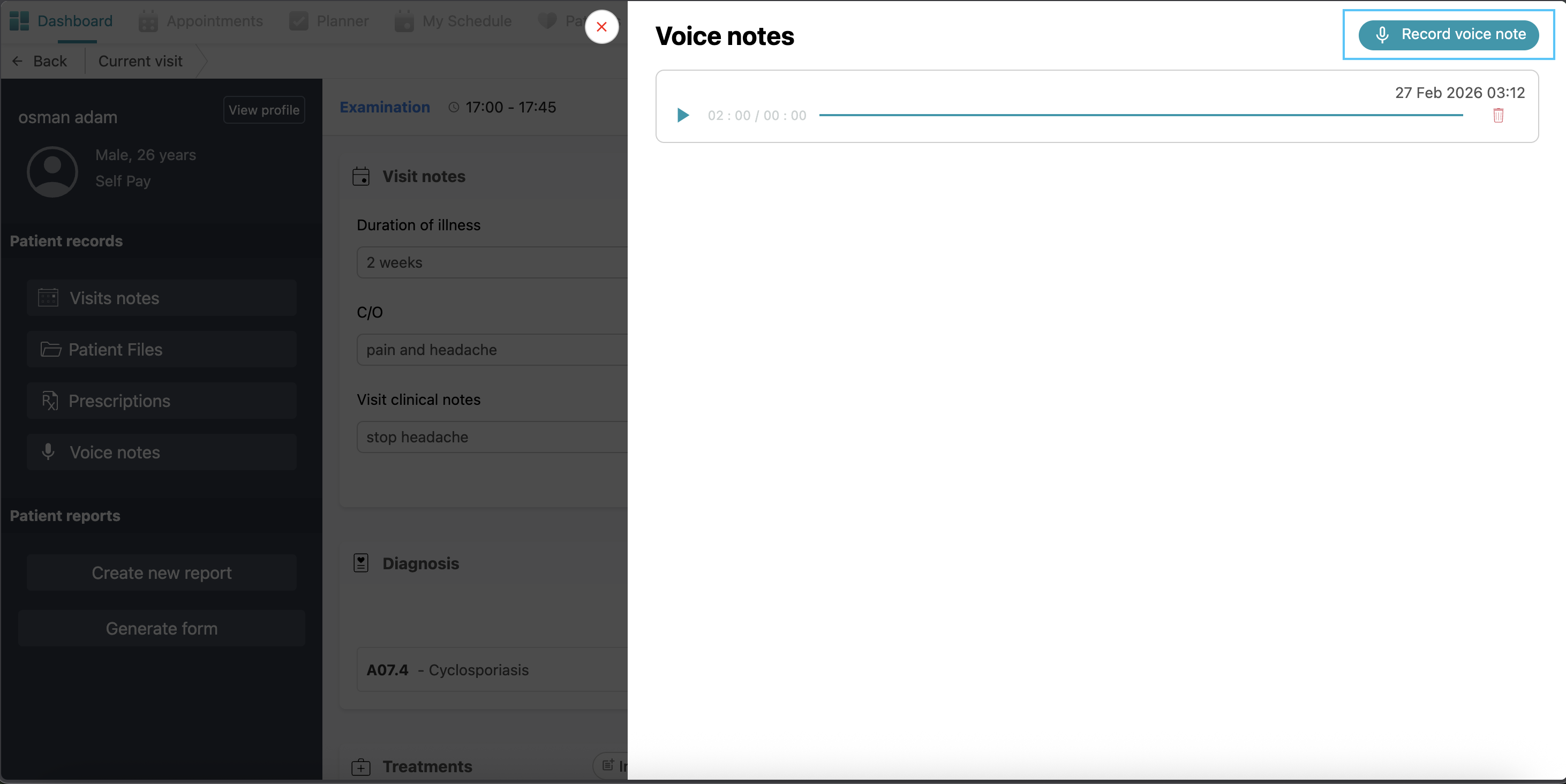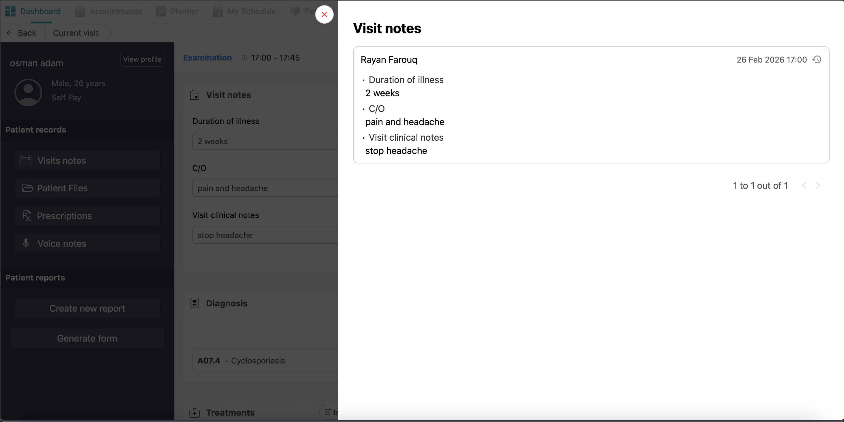 Diagnosis: Here you can see the patient’s diagnosis added before.